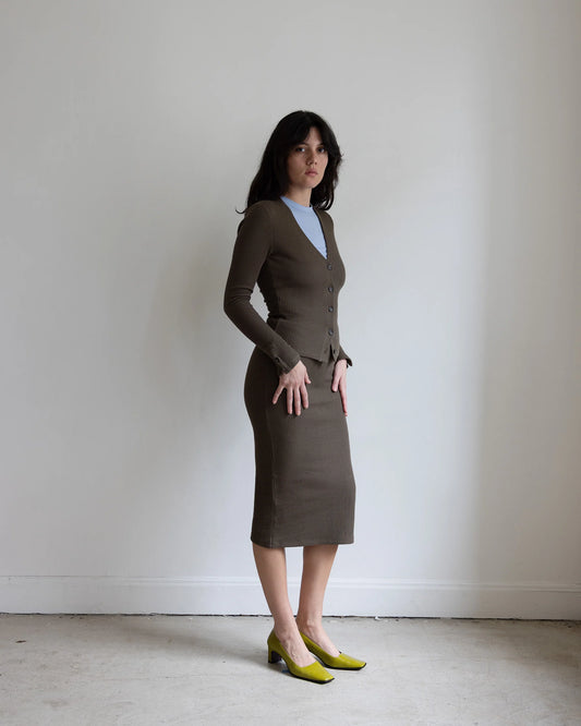 Pari Desai- Worley Ribbed Knit Skirt in Brune & Blue