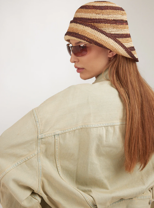 Clyde Opia Hat in Cream Tan and Brown Stripe Toquilla Straw