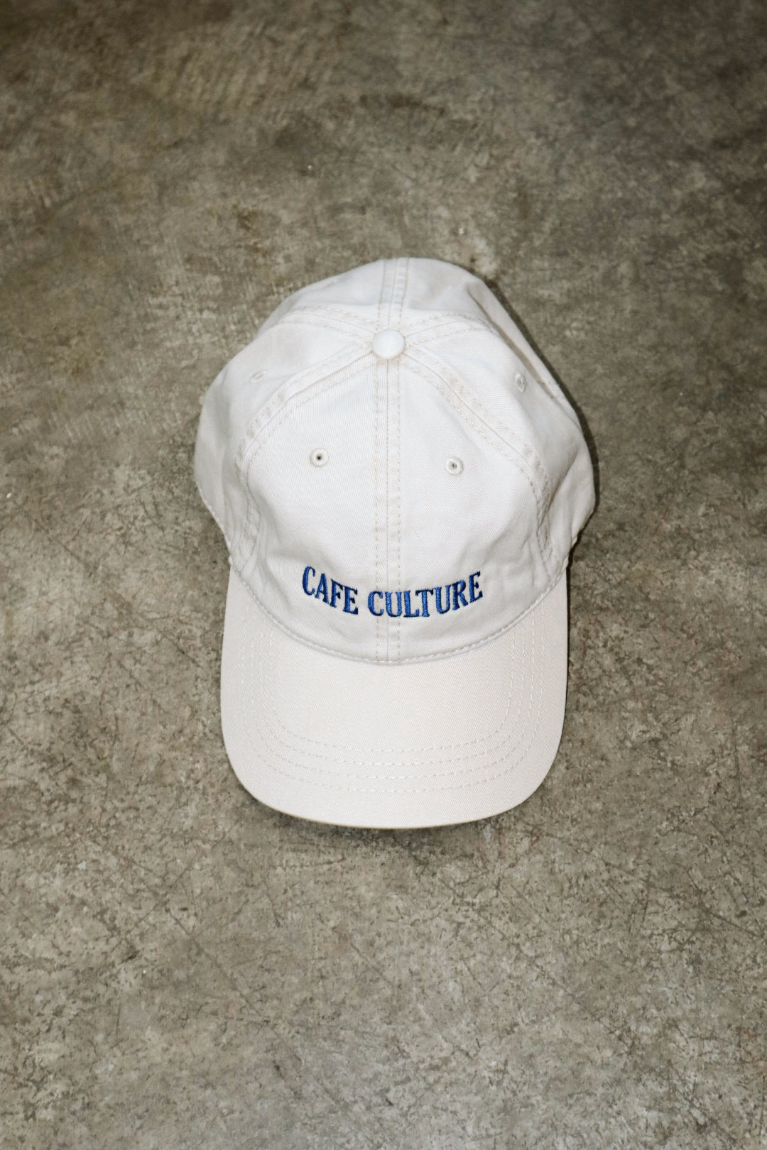 Chasing that Cafe Culture forever. A classic cap with adjustable back in cream hat with navy blue text. An every day staple. In collaboration with A.W.