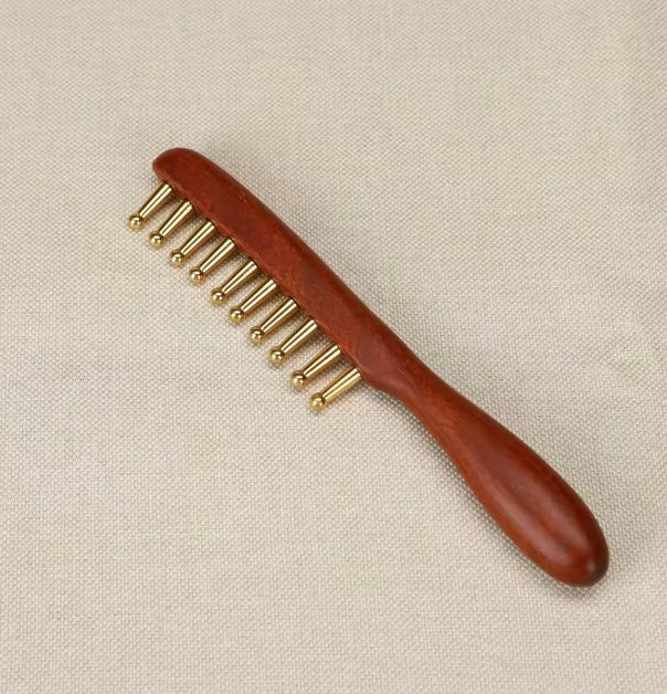 Your scalp and hair will thank you for using this comb. It can be used to massage the scalp, gently pressing the knobby ends into places where you are feeling tension. Work the comb through your hair and over tense spots on your scalp. Can also be used on the neck and shoulders etc.