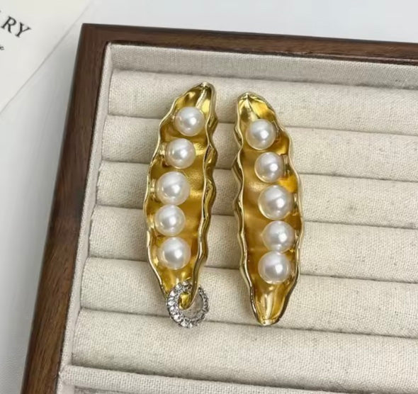 A fun way to dress up any look with these surrealist vibe faux pearl gold tone and crystal earring set.