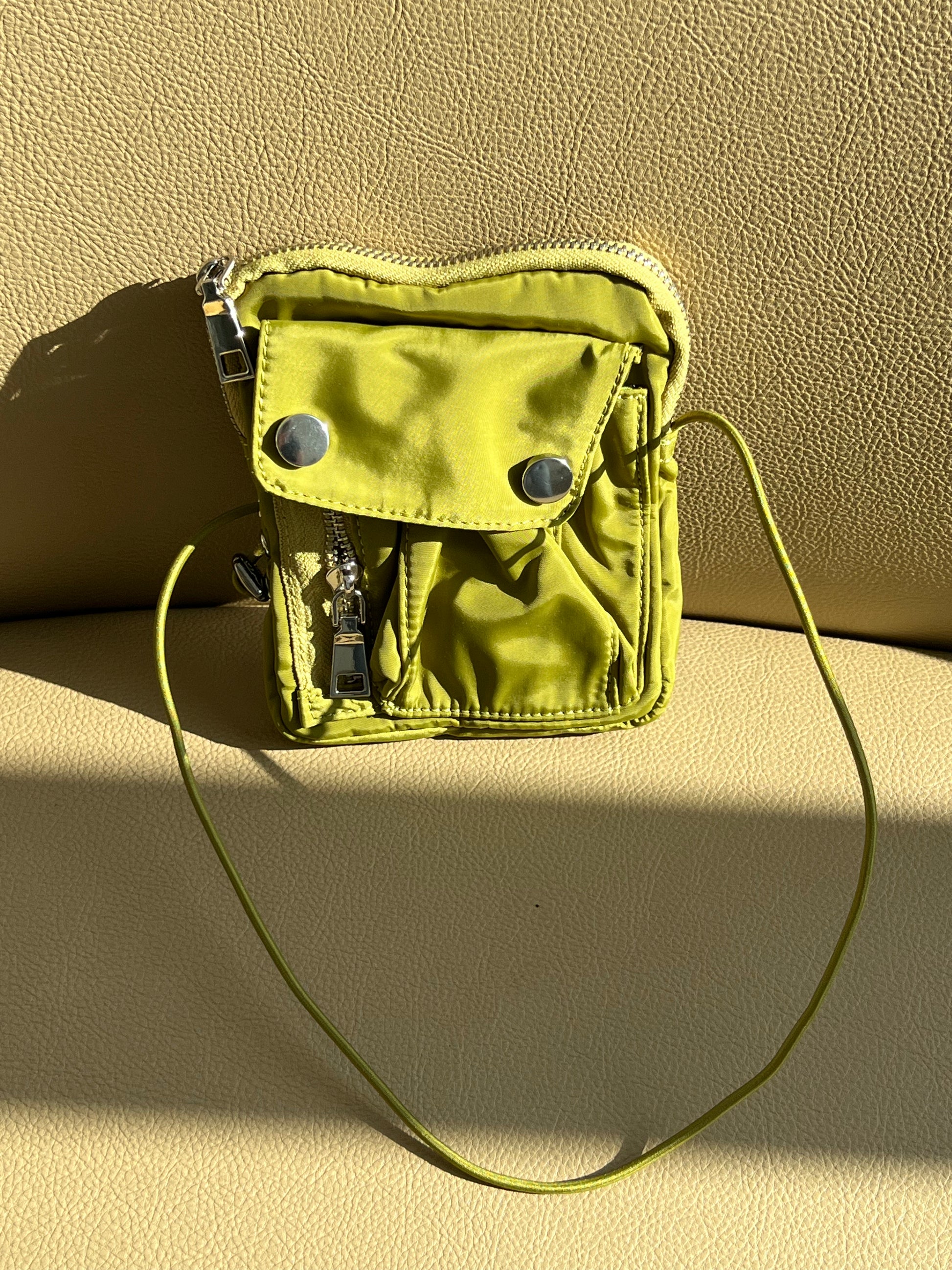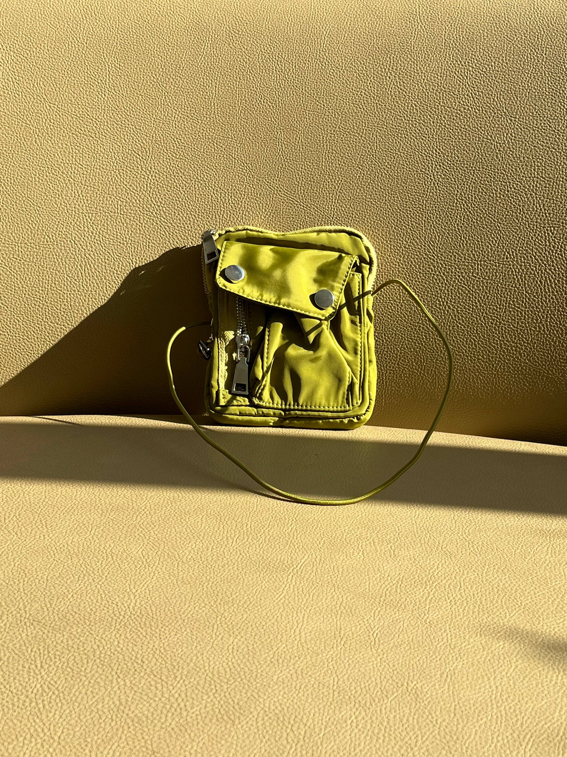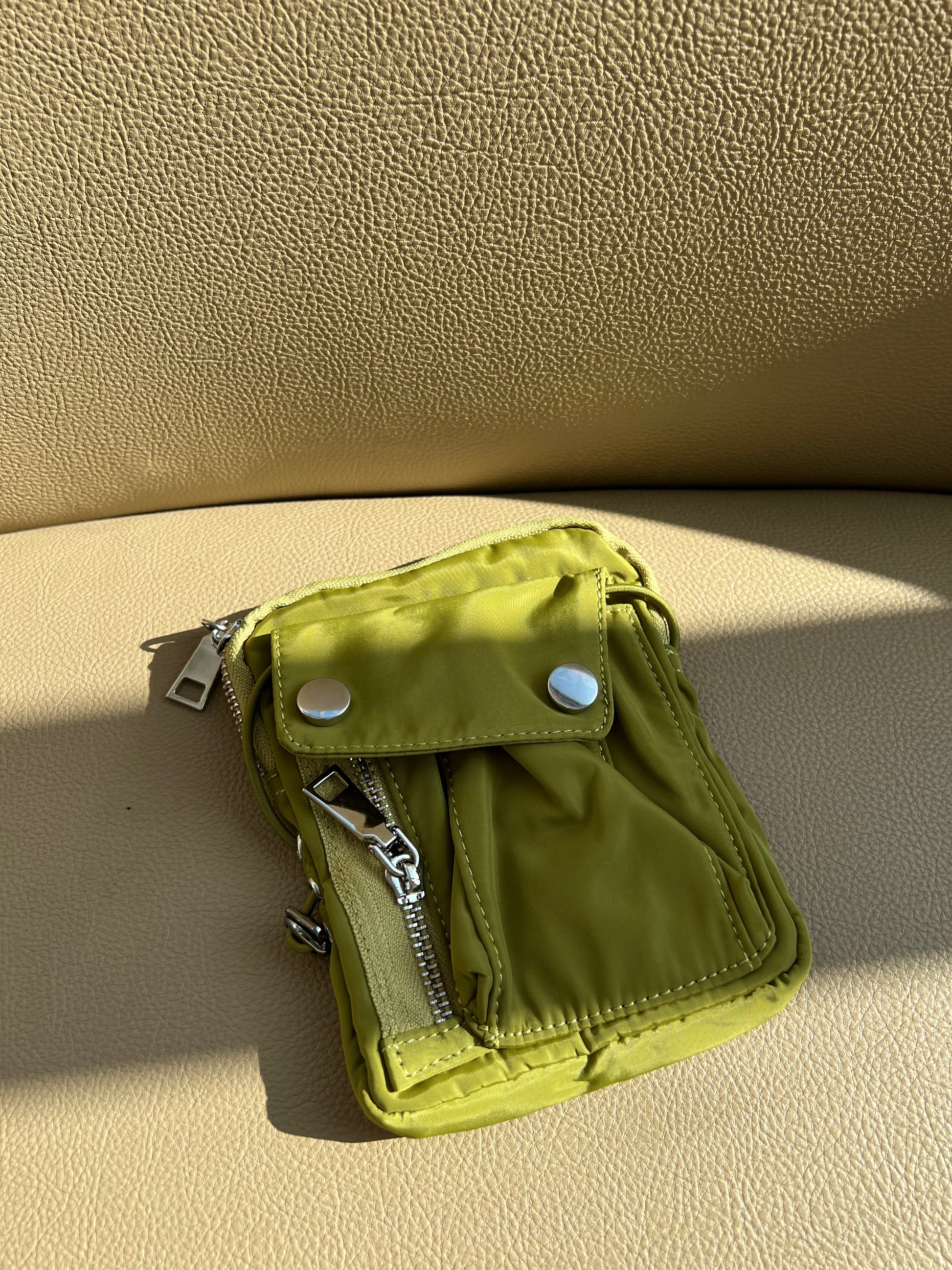 keep your essentials close in this tiny zipper bag - can be carried in hand or worn crossbody or around the waist using the elastic bands and pull-ties