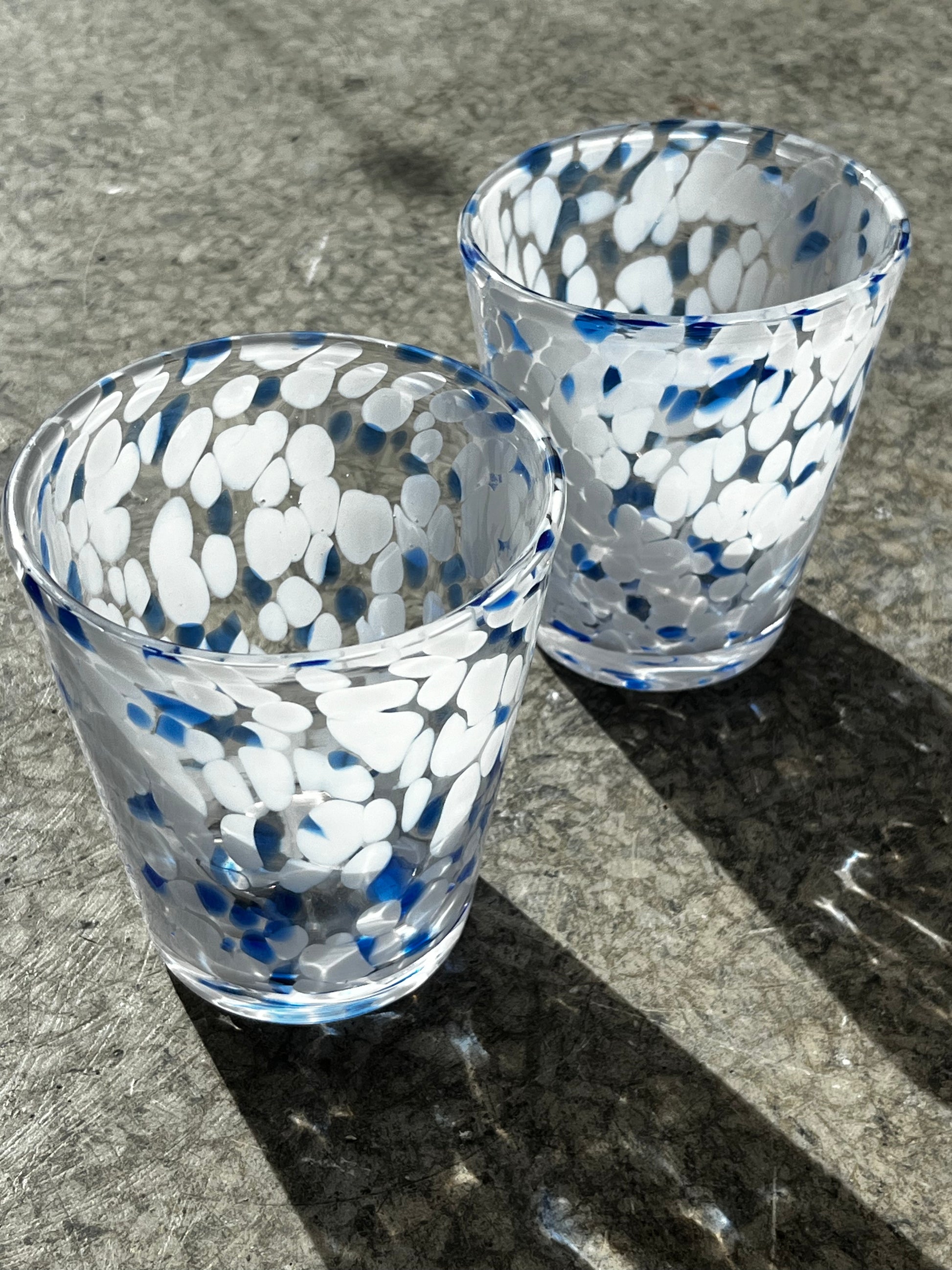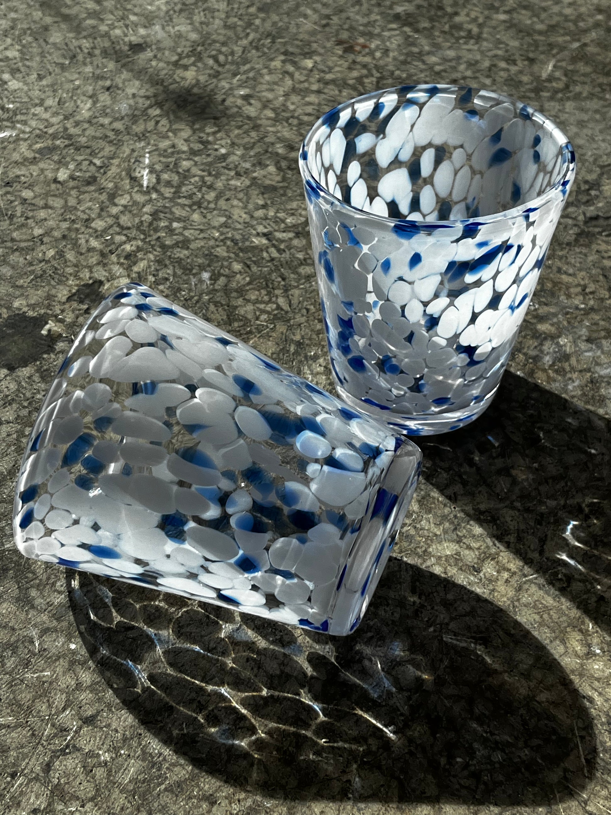 A gorgeous Venetian glass cup set in white and blue. Hand blown.