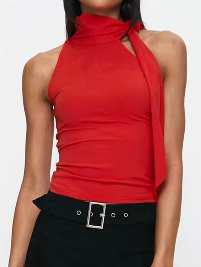 Red tie tank top