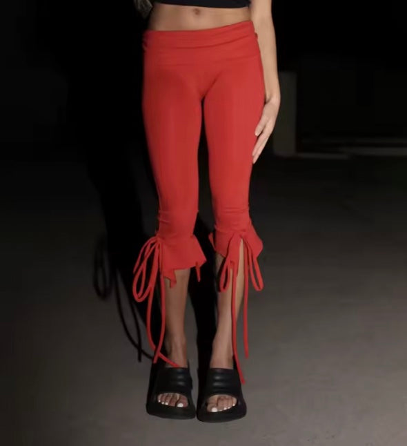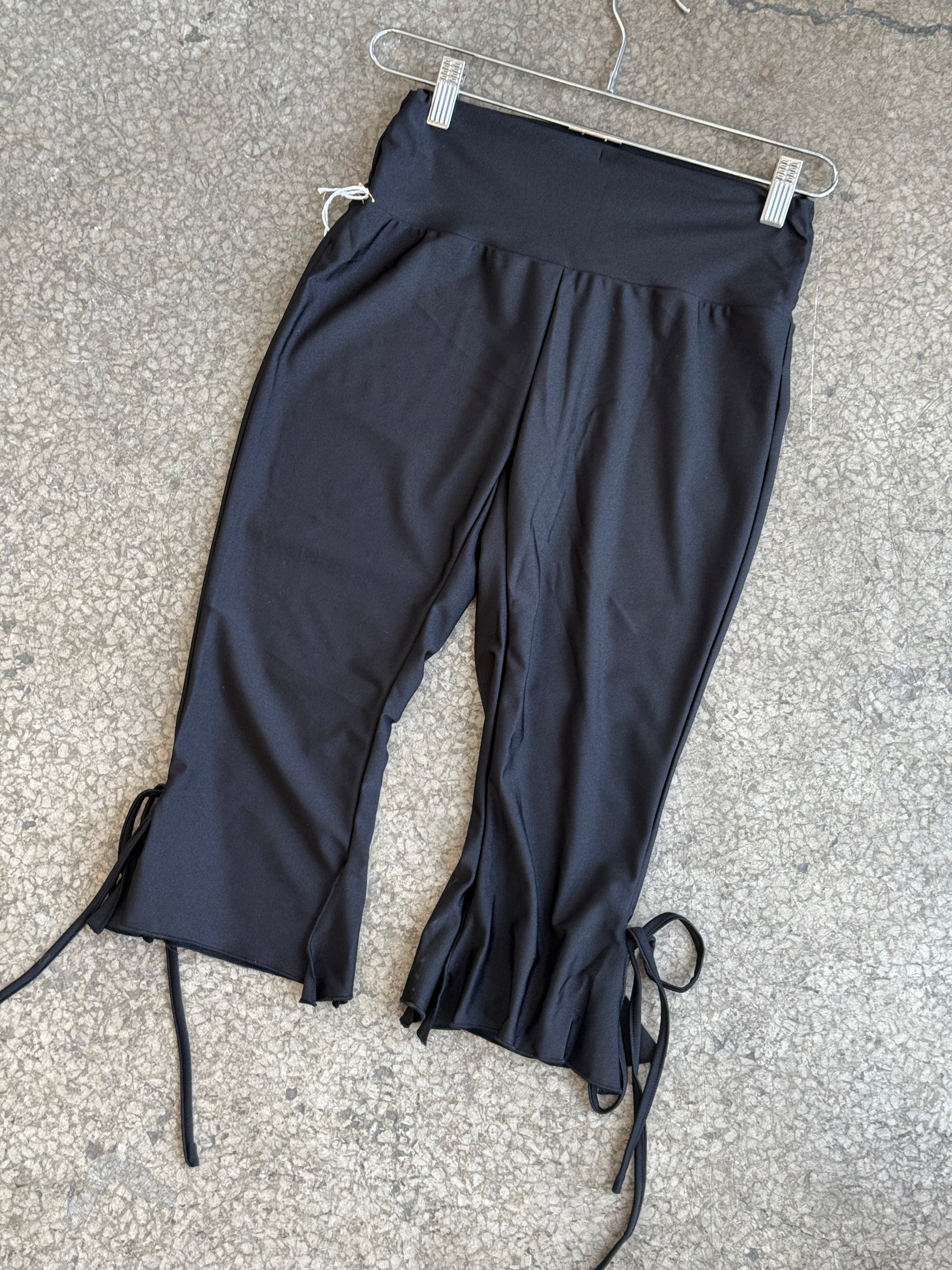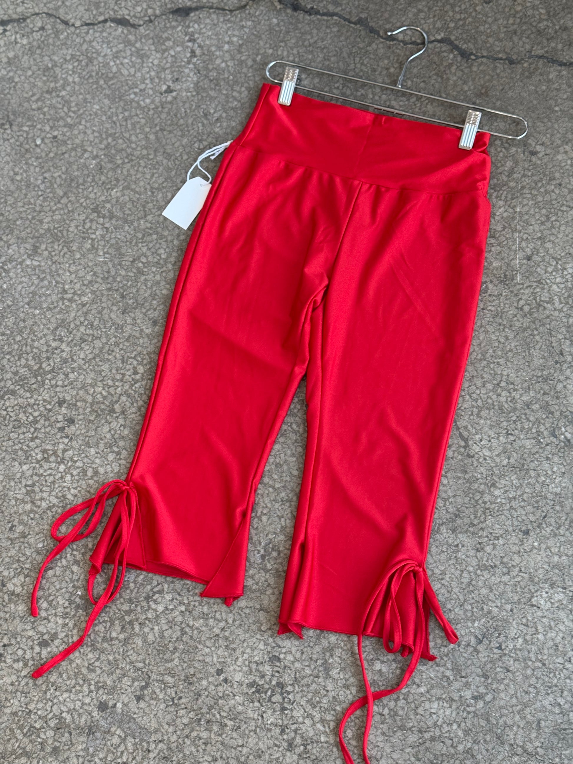 This capri pants are perfect to slip on and wear with an oversized tee or cropped shirt. They have a slight sheen to them making them playful and fun.